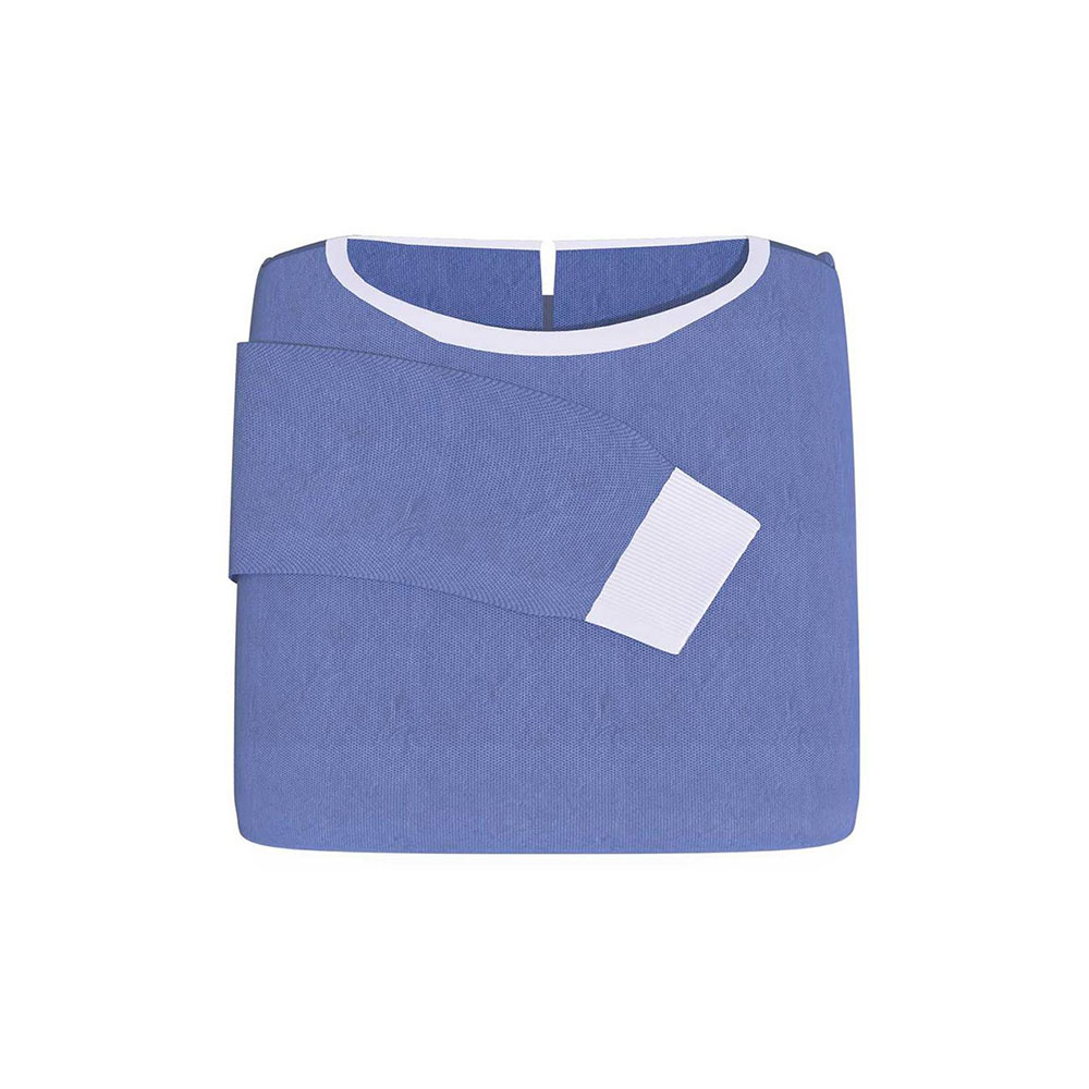 Casaques chirurgicales stériles à usage unique en SMMS 45 g hydrophobes, avec deux essuie-mains à l'intérieur.